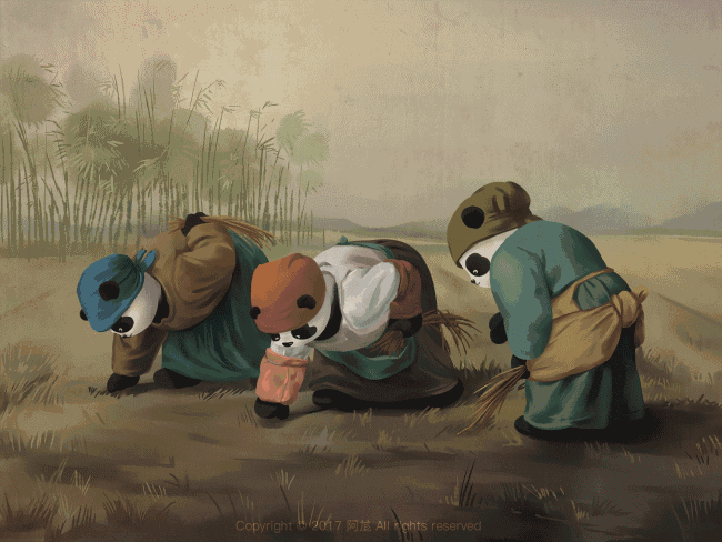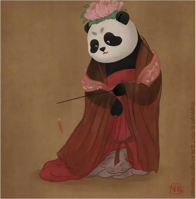 ,畫中的主角是咱們的國寶大熊貓滾滾